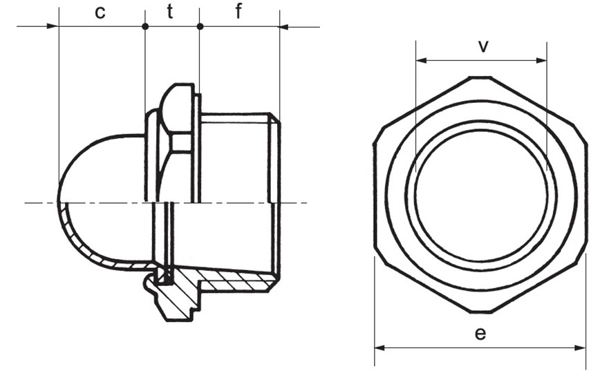 | TIPO | CODICE | FILETTATURA | f | t | v | e | c | PESO (g) |